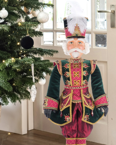 Step back in time and experience the magnificent Christmas Castle theme. Hand beaded rosette appliqués embellished with jewels create a stunning stained-glass effect, elaborately detailed quatrefoils, swirled gold adornments and architectural details abound throughout the collection. The scrumptious satin and luxurious velvets used throughout will add warmth and be a lavish addition to your décor.